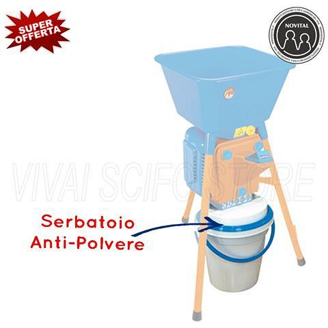 Зернодробарка Novital Magnum 4V Для розмелювання зернових, бобових, спецій, цукру, кави, сухих трав, панірувальних сухарів. Італія Контейнер - відро в комплекті! Універсальна побутова зернодробарка, дуже компактна і потужна. Завдяки роботі свого розмельного механізму дозволяє подрібнювати велика кількість різних сипучих продуктів. Фракція помелу регулюється, мінімальна тонкість 100 мікрон, максимальна 8 мм. У першу чергу використовується для швидкого розмелювання великих обсягів повного спектру хлібних злаків (кукурудза, жито, овес, ячмінь, пшениця), бобових, кави, спецій, цукру, так само висушений хліб, сухі трави, сіно, солома і. т. д. Обладнана пилонепроникним збірником, який з'єднує вихідний отвір розмельного механізму з нижнім бункером, в який потрапляє готовий продукт. Вбудований автомат сприяє відключення двигуна в разі його перевантаження при тривалій роботі. Безпечний доступ до размольному механізму. Оснащений спеціальною заслінкою для регулювання потоку надходження сипучих продуктів та зернових в розмельні механізм млини. Технічні характеристики: Ступінь подрібнення (мм) - від 0,1 до 8. Кількість ступенів помолу - 8. Потужність двигуна: 750 W, 13000 — 15000 об/хв. Напруга: 220 - 230 V. Продуктивність, кг/год: 90-250. - дрібна фракція 90 кг / год - велика фракція 250 кг /годину. Вага: 12 кг Матеріал корпусу: харчовий пластик. Розміри (см): 52 Х 44 Х 72 в комплекті 4шт сітки: Crivelli in dotazione: Ø mm 4 Ø 2,5 mm Ø mm 6 Ø mm 8 додаткові сітки: 1,5 і 1 мм